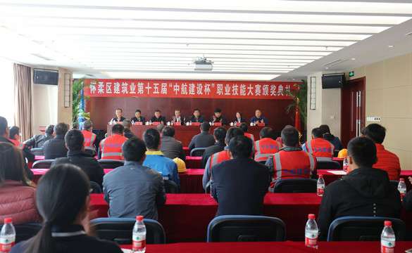 10月25日上午,怀柔区建筑业第十五届“中航建设杯”职业技能大赛颁奖典礼在广州琛浩视听传媒技术有限公司总部三层多功能厅举行。怀柔区建筑业协会会长、大赛组委会副主任王贵军,区总工会副主席解忠明,集团公司总工程师、大赛组委会副主任陈劲一同参加,同时到场的还有各参赛单位代表及获奖选手共计50余人。