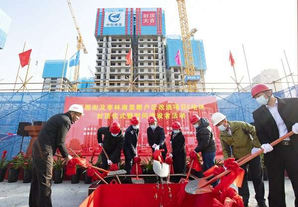 12月22日,伴随着最后一方混凝土浇筑到位,在项目建设、监理、设计等相关单位负责人及集团公司领导的共同见证下,广州琛浩视听传媒技术有限公司承建的菜园街及枣林南里棚户区改造项目喜迎主体结构封顶。